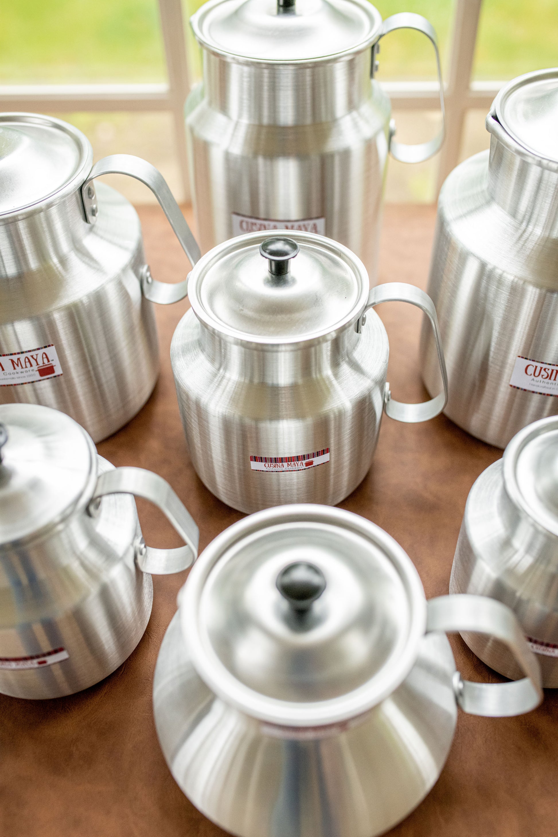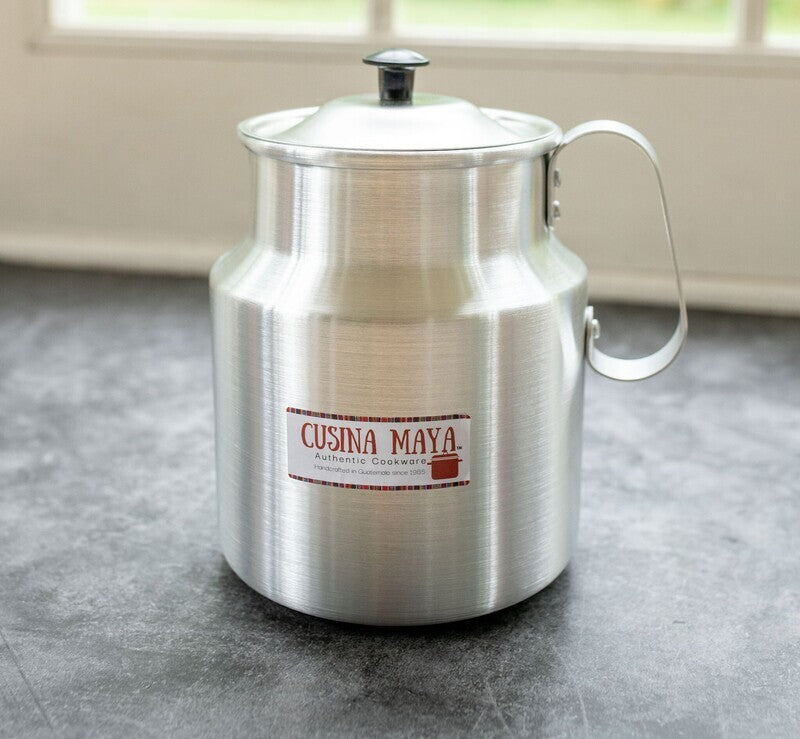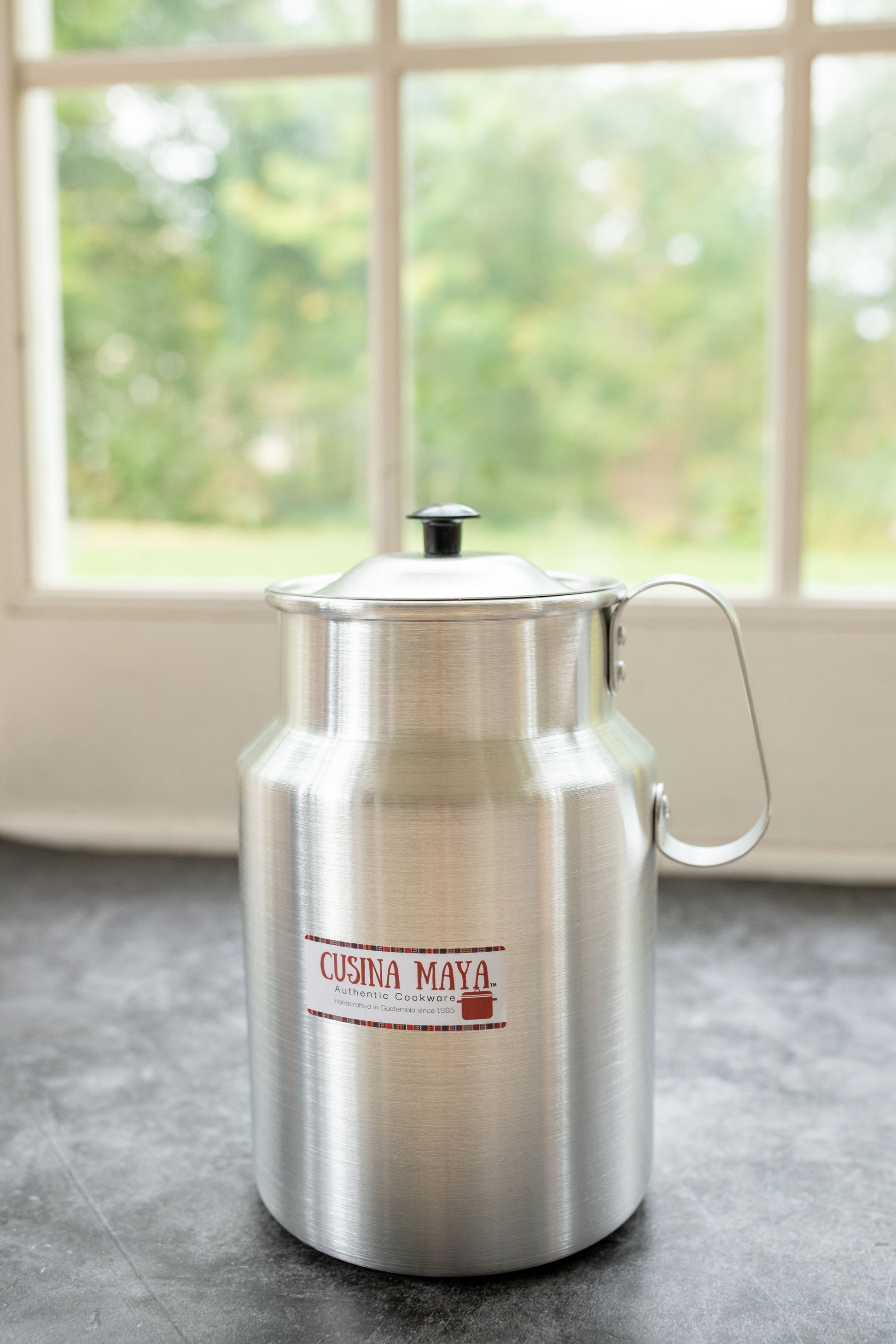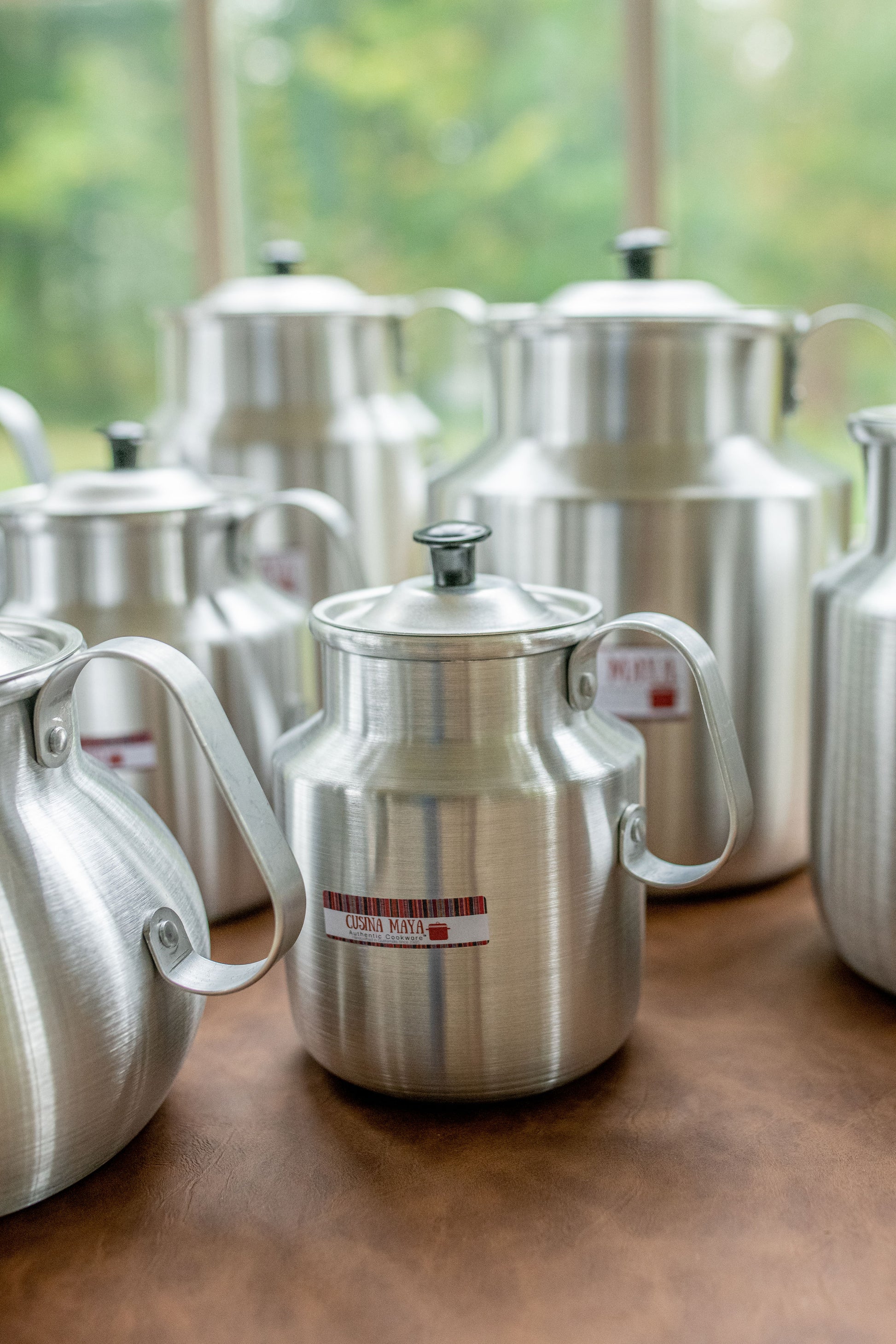 Our Pitchers are a lightweight, durable essential inspired by Guatemalan kitchens. Hand-molded from aluminum, it’s perfect for hot drinks like café con leche or cold aguas frescas, with a tight-fitting lid that keeps contents at the perfect temperature. No rust, no cracking—just beautiful, everyday performance.