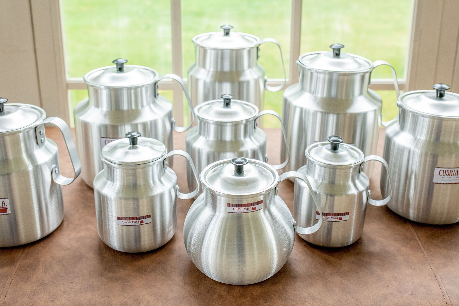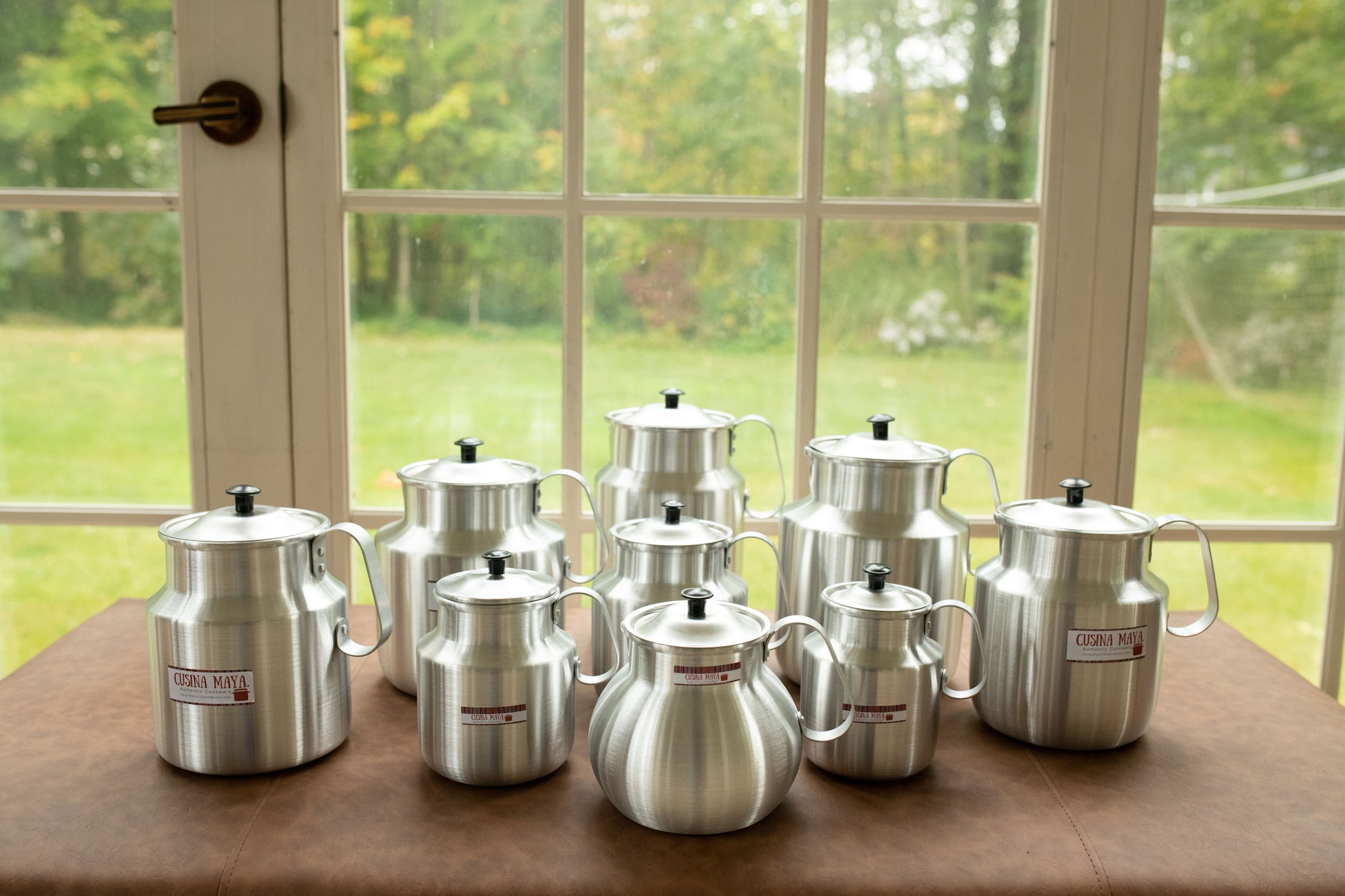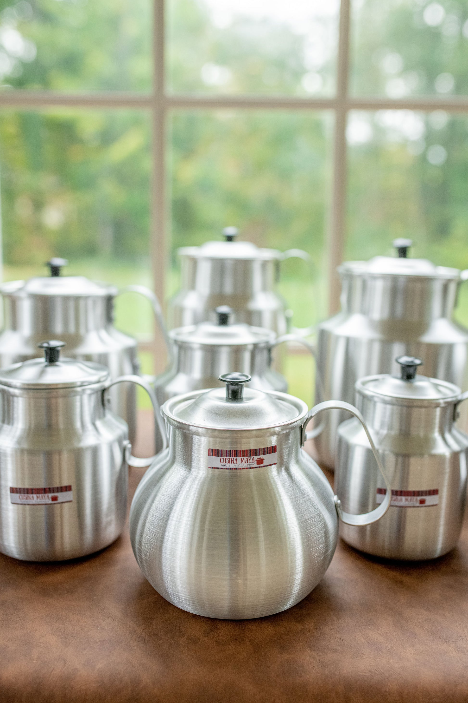 Our Pitchers are a lightweight, durable essential inspired by Guatemalan kitchens. Hand-molded from aluminum, it’s perfect for hot drinks like café con leche or cold aguas frescas, with a tight-fitting lid that keeps contents at the perfect temperature. No rust, no cracking—just beautiful, everyday performance.